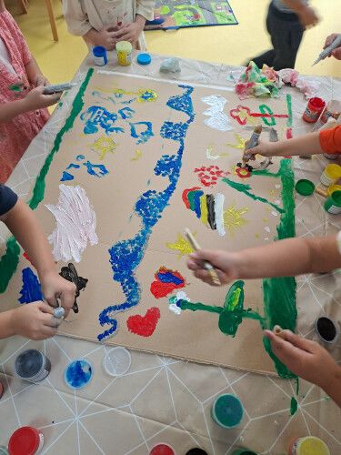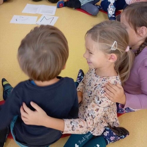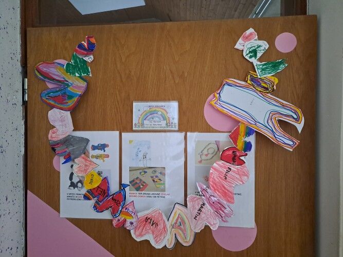 Pričeli smo s pogovorom, kaj je to prijaznost in kakšna prijazna dejanja zmorejo narediti otroci doma in v vrtcu. Vse odgovore smo zapisali in mavrični vrt prijaznih dejanj oblikovali. Nanj smo nalepili nalepke naših prijaznih dejanj in takoj smo nekomu polepšali dan. Sadili smo rastline, jih negovali, pozorno smo jih opazovali. Med seboj smo si v igralnici pomagali ter v kotičku za pomiritev rešitve prepirov iskali. Naučili smo se ogromno novih stvari, recimo, kako se z dihanjem človek umiri. Izvajali smo različne dihalne tehnike, se igrali igrice. Spoznavali in učili smo se o naših čustvih, o našem telesu, pa o Zemlji in celem vesoljskem nebu. Izdelali smo kozarce za umiritev naših misli ter prijateljčke za pomiritev ob temačni nevihti. Skupaj smo likovno ustvarjali stvari, izdelovali smo zapestnice za krepitev naših prijateljskih vezi. Spoznali smo, da na svetu živimo različni ljudje in spoznali smo tudi, kako se reče beseda mir po svetu nekje. Preko črk smo se učili in nove besede osvojili, pozornost, prijaznost, čuječnost, skrb, odpuščanje, hvaležnost in dihanje. Svoje dihanje smo umirili, tako da smo vetrnice uporabili. V njih smo pihali močno, da naše jeze in žalosti več ne bo. Nasmehe smo si medsebojno delili ter se pesmic z uporabo znakovnega jezika naučili. Vse znanje naši otroci že pridno v vrtcu uporabljajo in skupaj s starši novo znanje obnavljajo.