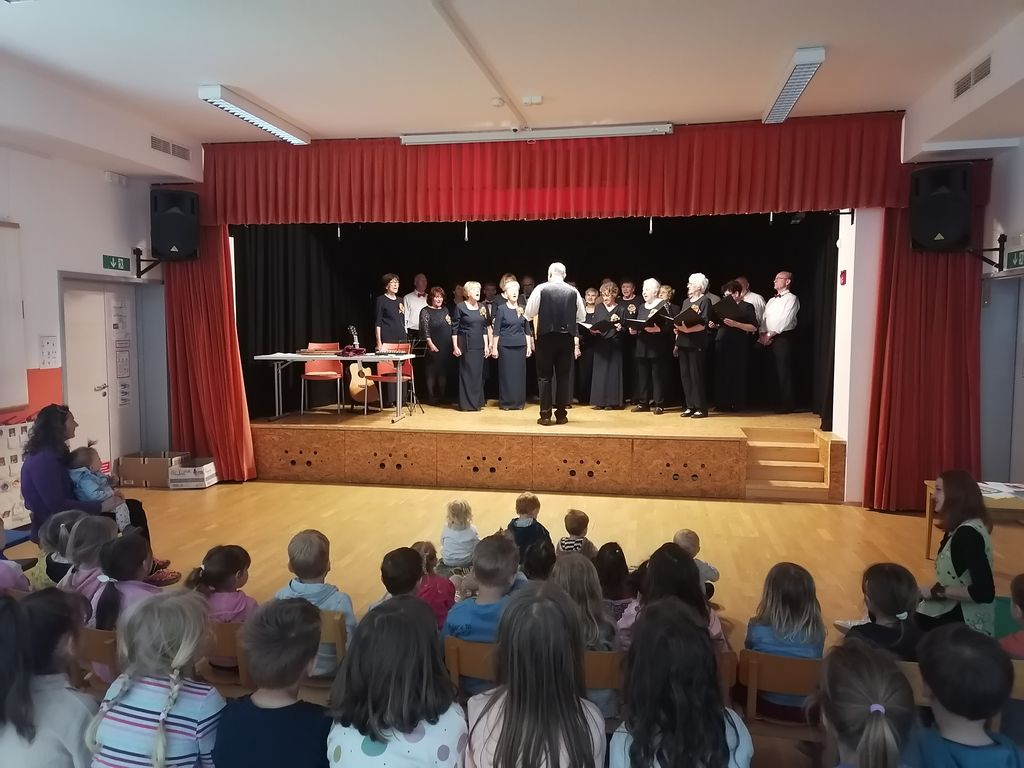 Pevci so z melodijami slovenskih ljudskih pesmi v vrtčevskih prostorih ustvarili posebno vzdušje topline, domačnosti in povezanosti. Otroci so z zanimanjem poslušali in tudi sami zapeli. Pesem, kot del naše kulturne identitete, nas je vse skupaj združila v prijetno preživet dopoldan.