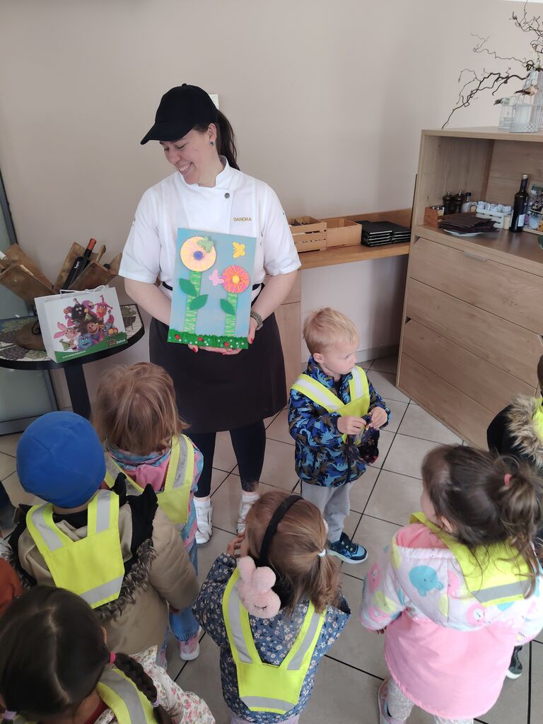 Iskreno smo se zahvalili Sandri za njen čas, prijazen sprejem, zanimivo in poučno predstavitev ter pogostitev. V znak hvaležnosti smo jim podarili posebno darilo - spomladansko sliko, ki so jo ustvarili otroci. Skupaj smo se nato še fotografirali, Sandra pa je sliko ponosno postavila na vidno mesto, kjer hranijo takšna darila.