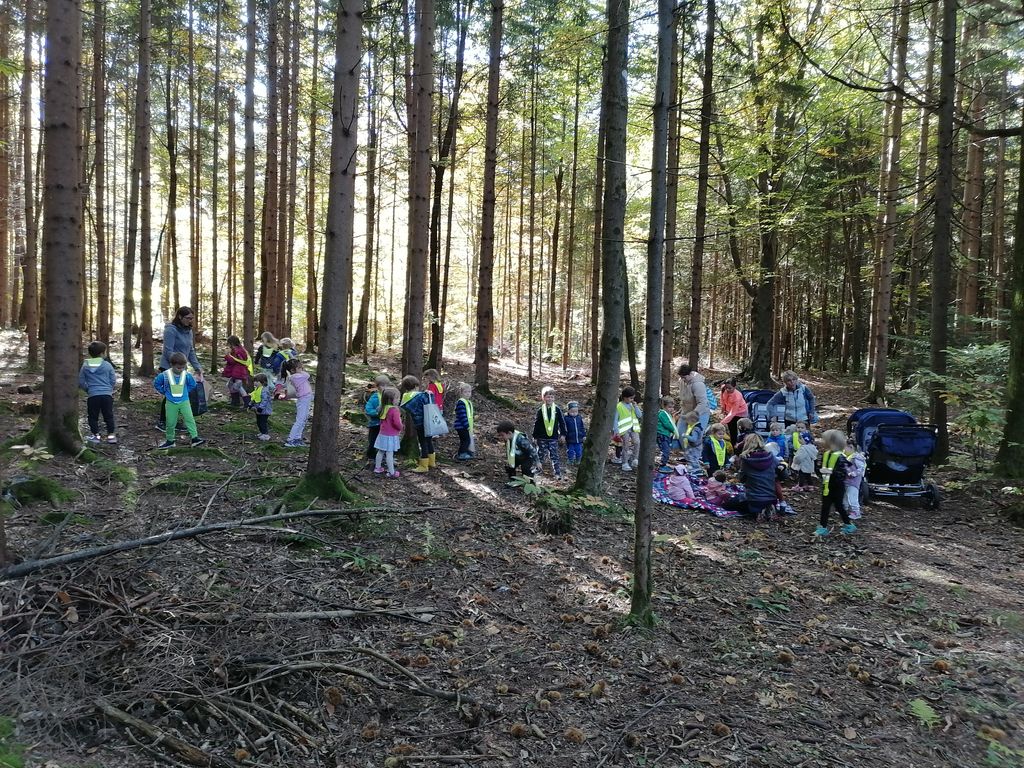 Skupaj smo se odpravili v gozd, kjer smo opazovali in raziskovali gozd, nabirali naravni material in seveda kostanj. Nabrali smo zelo veliko kostanja in dogovorili smo se, da ga bomo skupaj pojedli na našem kostanjevem pikniku.