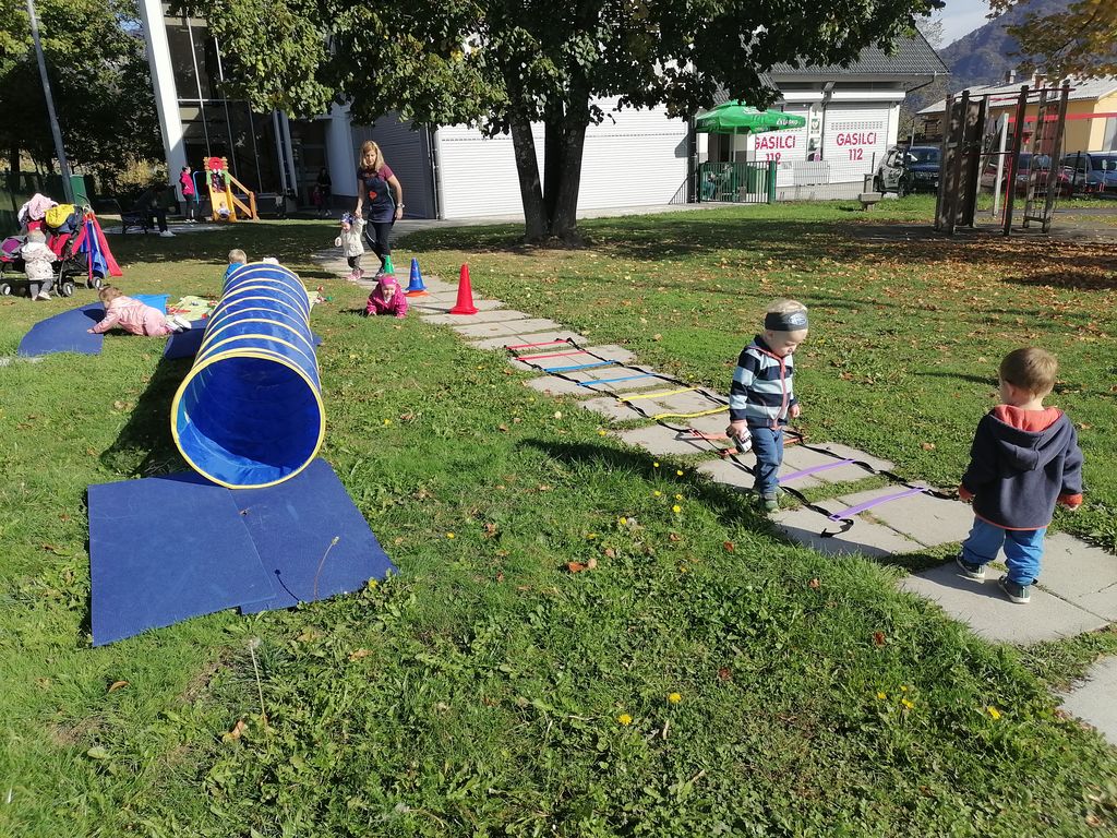 Vsi skupaj se zavedamo, da otroci potrebujejo sproščenost, dobro voljo in obilo skupnega druženja. Tako lahko aktivno sodelujejo, razvijajo svoje komunikacijske spretnosti in uživajo v druženju z drugimi ljudmi okoli sebe. Enota Križe se je skupno odločila, da pripravimo prijetno dopoldansko druženje. Potekalo je v petek, 7. 10. 2022, na dvorišču enote. Sodelovale so vse starostne skupine, skupaj s svojimi strokovnimi delavci.