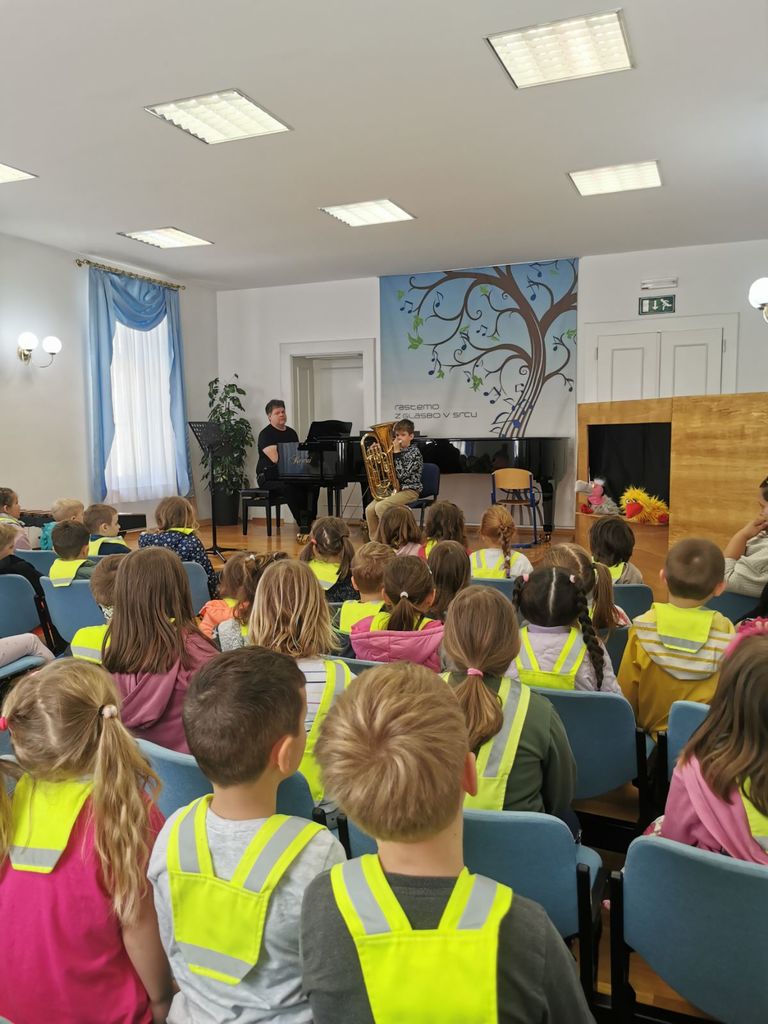 V preteklem tednu smo obiskali Glasbeno šolo Tržič, kjer so otroci z navdušenjem spoznali glasbila ob zabavni zgodbi z lutkama krokarjem Nacetom in jastrebom Rozo.