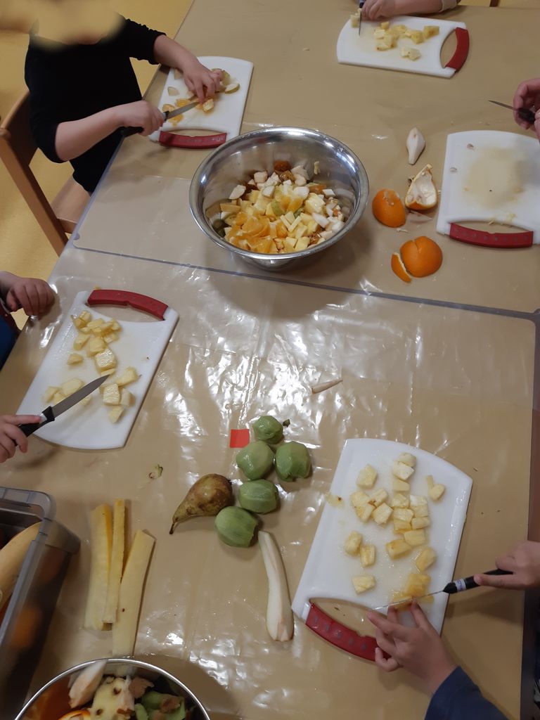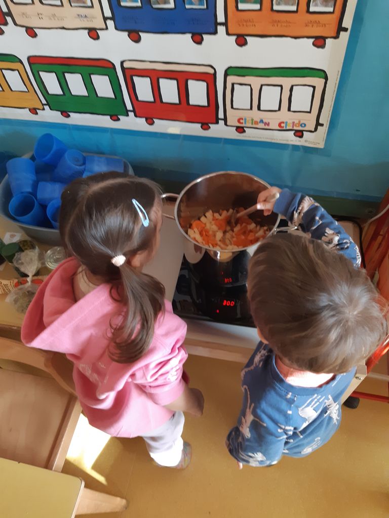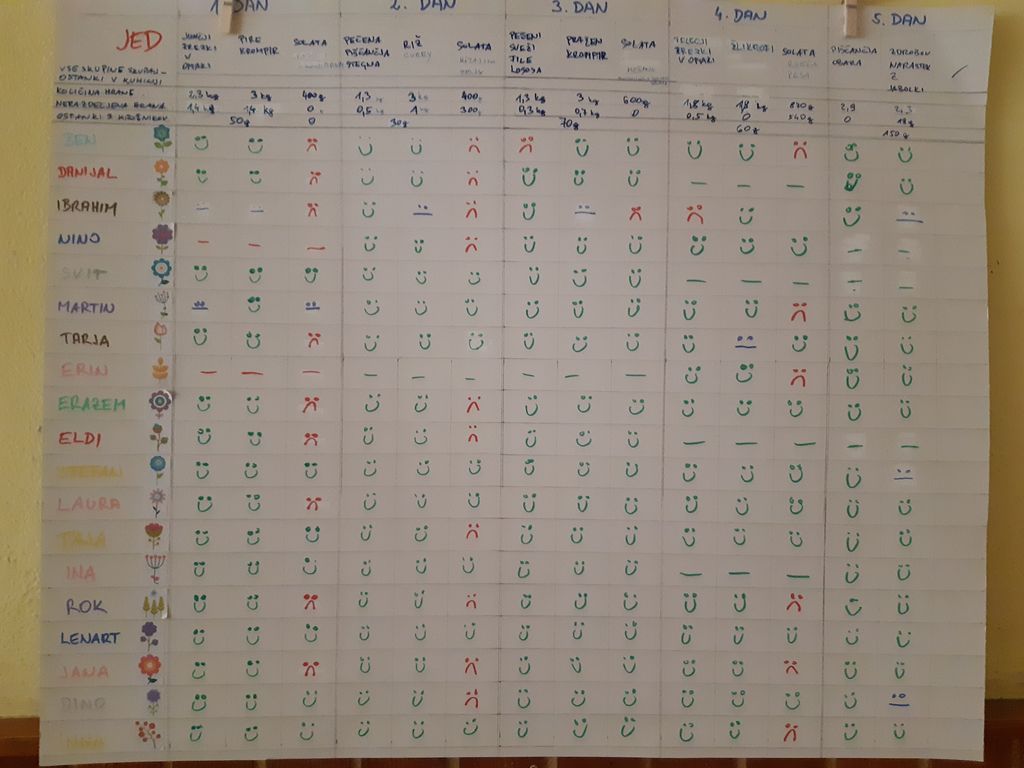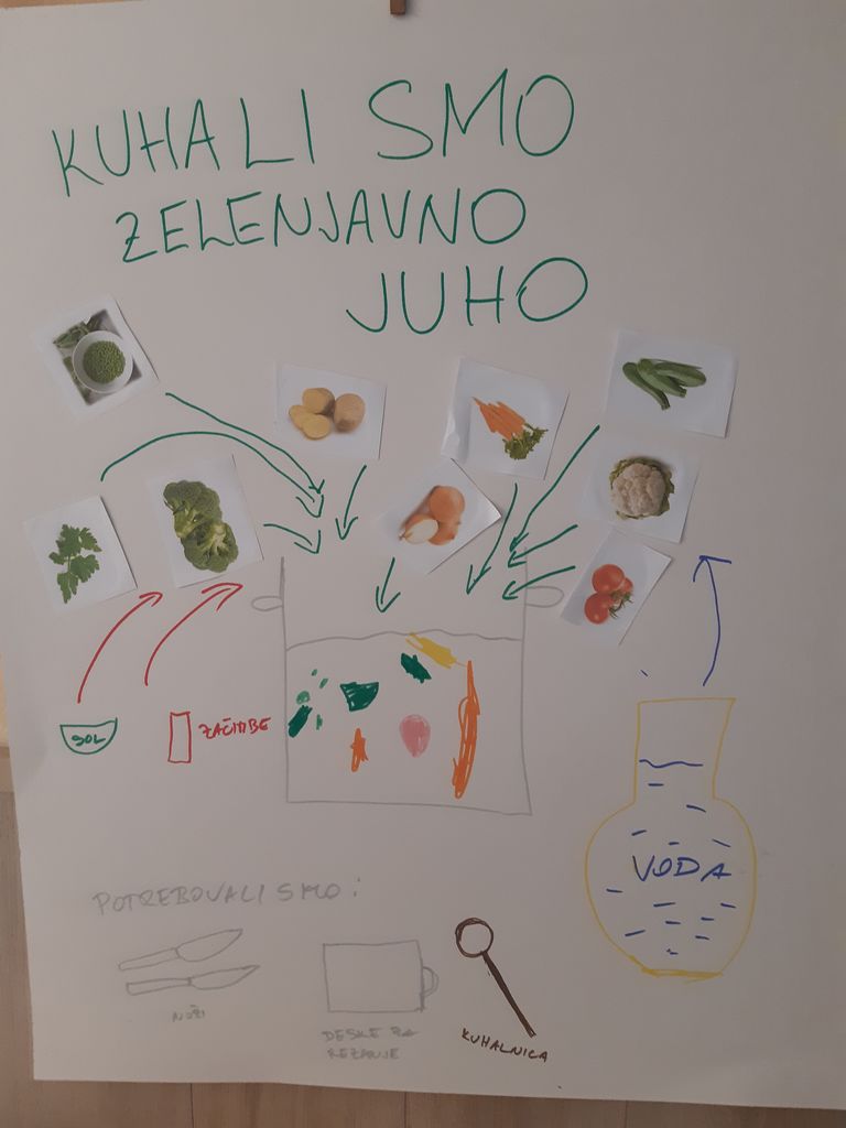 V enoti Deteljica v okviru Eko-šole sodelujemo v projektu z naslovom HRANA NI ZA TJAVENDAN. Vsi se vedno bolj trudimo, da bi naš vrtec zavrgel čim manj hrane. V igralnici Tulipan smo raziskovali, koliko hrane zavržemo v naši igralnici ter koliko hrane je vsak dan naša kuharica primorana zavreči iz vseh desetih skupin naše enote. Rezultate smo posredovali vodji prehrane in v kuhinjo. Naučili smo se, da iz ostankov hrane lahko pripravimo nove jedi. Tako smo iz ostankov pripravili pica kruhke, sadno solato in zelenjavno juho. Prav vse smo z veseljem pojedli.