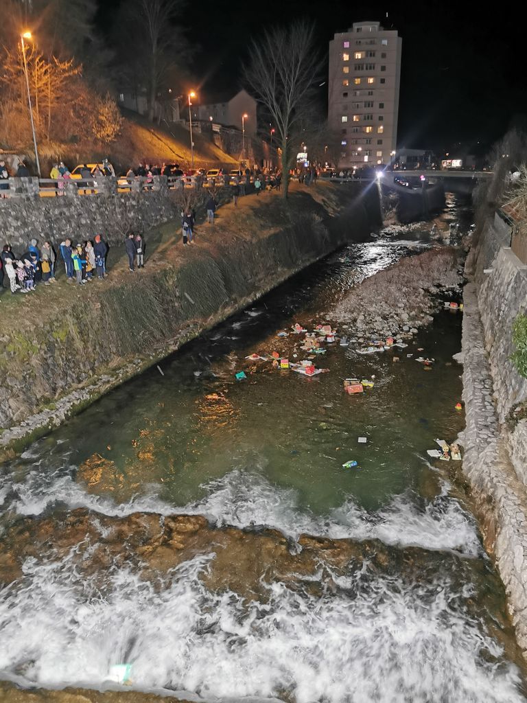 Otroci, starši in vzgojiteljice iz skupin Pedenjped in Zvezdica Zaspanka smo se zbrali v Tržiču na parkirišču pred nekdanjo tovarno BPT. Kar veliko se nas je zbralo! Tega smo bile strokovne delavke omenjehih oddelkov zelo vesele. Skupaj smo odšli do atrija Občine Tržič, kjer smo si ogledali prisrčen kulturni program, ki so ga pripravili učenci in učitelji OŠ Bistrica v sodelovanju z Občino. Sledil je čisto poseben sprevod z baklami skozi mesto jedro do nabrežja reke, kjer smo lahko tudi mi spustili svoje hiške - gregorčke.