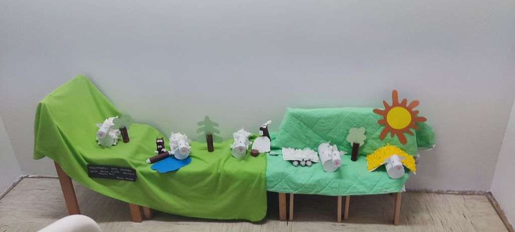 V mesecu maju smo se z otroki iz skupine Poljski palček enote Palček Vrtca Tržič vprašali, zakaj je ovčka Belka uporabila svoj kožuh. Otroci so preko zgodbe prišli do spoznanja, da je bila ovčka Belka zelo prijazna, saj je iz svojega kožuha spletla oblačila, da živali v gozdu ne bi več zeblo. Do ovčke Belke pa je bilo prijazno tudi sonce, saj jo je prijazno ogrelo, ko ni imela več kožuha, ki ga je razdala za druge. Dogajanje v zgodbi so otroci ponazorili z izdelavo živali iz odpadnega materiala, ki smo jih razstavili na hodniku vrtca.
