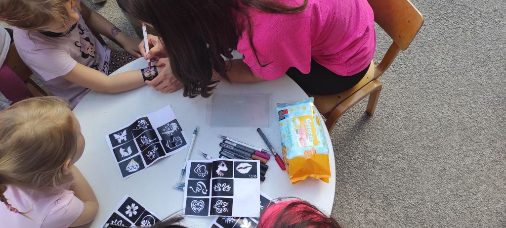 Piko na i so dodale poslikave obrazov in barviti tatuji, ki so razveselili vsakega malega obiskovalca in jim pričarali prav posebno podobo za ta dan.