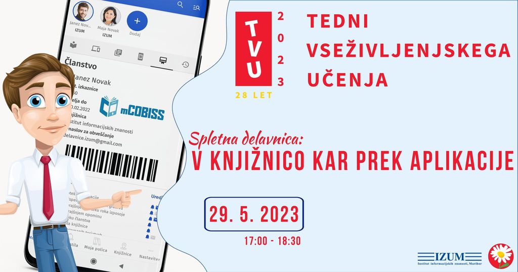 vljudno vabljeni v Knjižnico dr. Toneta Pretnarja na webinar z naslovom V knjižnico kar prek aplikacije, ki bo v ponedeljek, 29. 5. 2023, med 17.00 in 18.30.