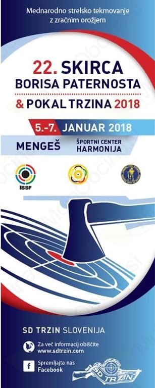 Mednarodno strelsko tekmovanje z zračnim orožjem: 22. SKIRCA BORISA PATERNOSTA & POKAL TRZINA, od 05.01.2018 do 07.01.2018, Športni center Harmonija.