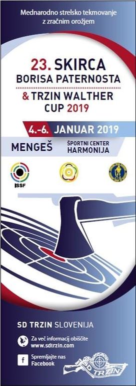 23. Skirca Borisa Paternosta & Trzin Walther cup 2019, od 4.1.2019 do 6.1.2019, v Športnem centru Harmonija, v Mengšu.