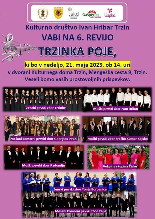TRZINKA POJE, ki bo v nedeljo, 21. maja 2023, ob 14. uri, v dvorani Kulturnega doma Trzin.
