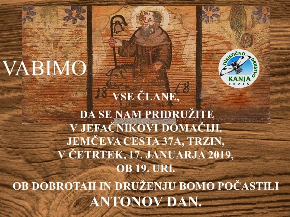 TD Kanja: počastitev Antonovega dne, v četrtek, 17. januarja 2019, ob 19.00 uri, v Jefačnikovi domačiji.