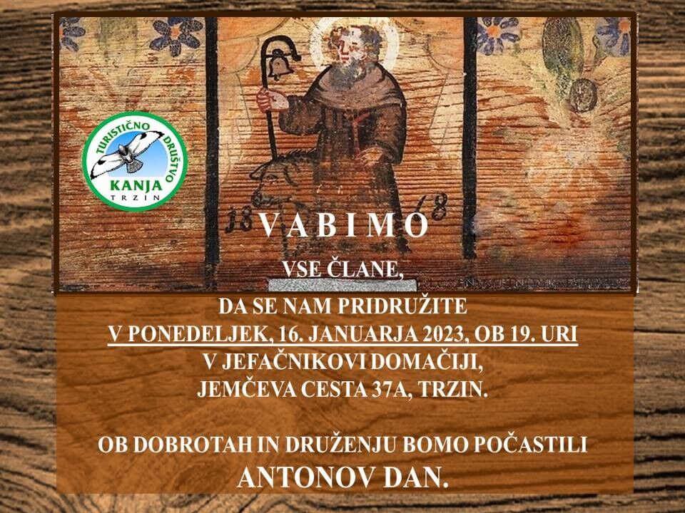 TD Kanja: počastitev Antonovega dne, v četrtek, 16. januarja 2023, ob 19. uri, v Jefačnikovi domačiji, Jemčeva cesta 37a, Trzin.