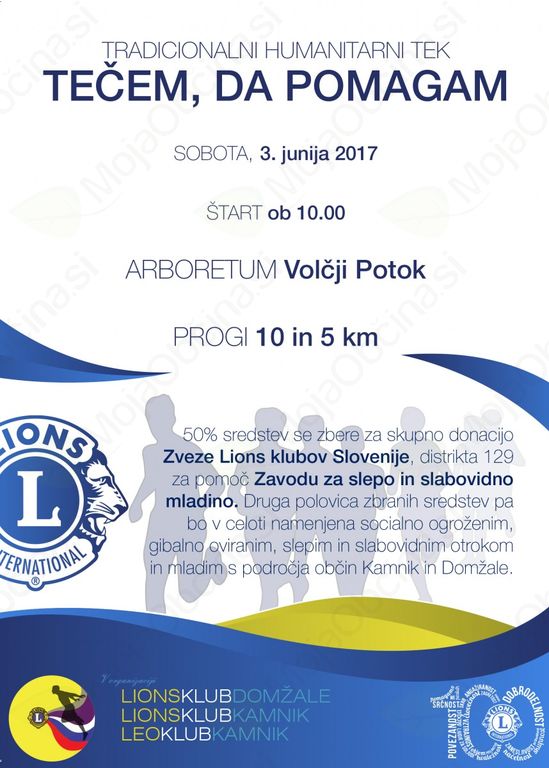 Tradicionalni humanitarni tek: TEČEM, DA POMAGAM, v soboto 3. junija 2017, ob 10.00 uri, v Arboretumu Volčji potok.