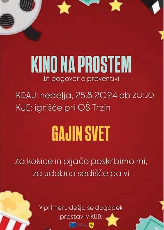 GAJIN SVET - Kino na prostem in pogovor o preventivi, v nedeljo, 25. 8. 2024, ob 20.30, na igrišču pri OŠ Trzin.