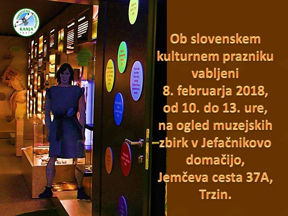 Ob slovenskem kulturnem prazniku, 8. februarja 2018, od 10.00 do 13.00 ure vabljeni na ogled muzejskih zbirk v Jefačnikovo domačijo, na Jemčevi cesti 37a.