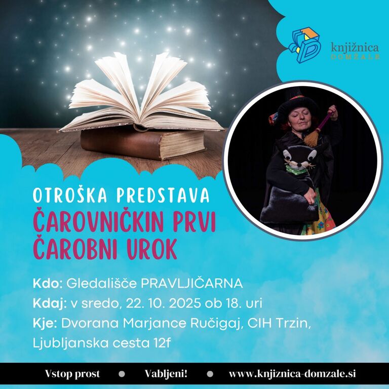 Otroška predstava Gledališča PRAVLJIČARNA: ČAROVNIČKIN PRVI ČAROBNI UROK, v sredo, 22. oktobra 2025, ob 18. uri, v dvorani Marjance Ručigaj.