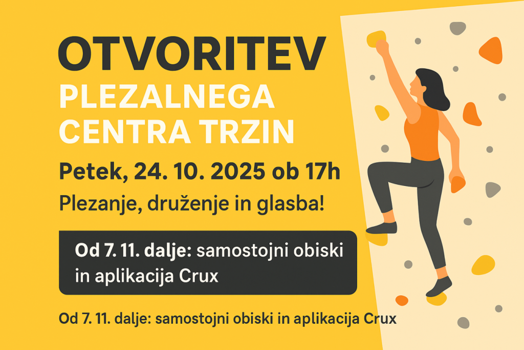 Vabljeni na OTVORITEV PLEZALNEGA CENTRA TRZIN, v petek, 24. oktobra 2025, ob 17. uri.
