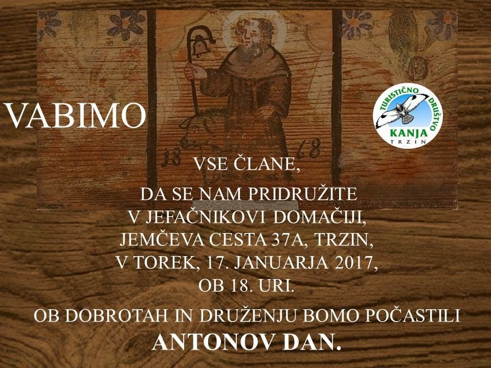 TD Kanja: Počastitev Antonovega dne, v torek, 17.01.2017, ob 18.00 uri, v Jefačn kovi domačiji.