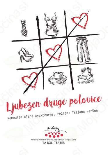 KUD Franc Kotar vabi na predstavo TA BOL TEATRA, z naslovom "Ljubezen druge polovice", ki bo v soboto, 14. aprila 2018, ob 20.00 uri, v Kulturnem domu Trzin.