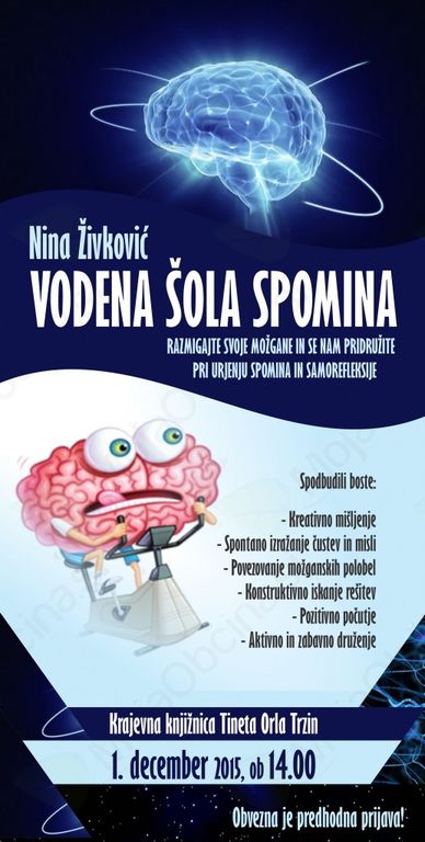Krajevna knjižnica Tineta Orla Trzin vabi na Vodeno šolo spomina, v torek, 1. decembra 2015, ob 14.00 uri!