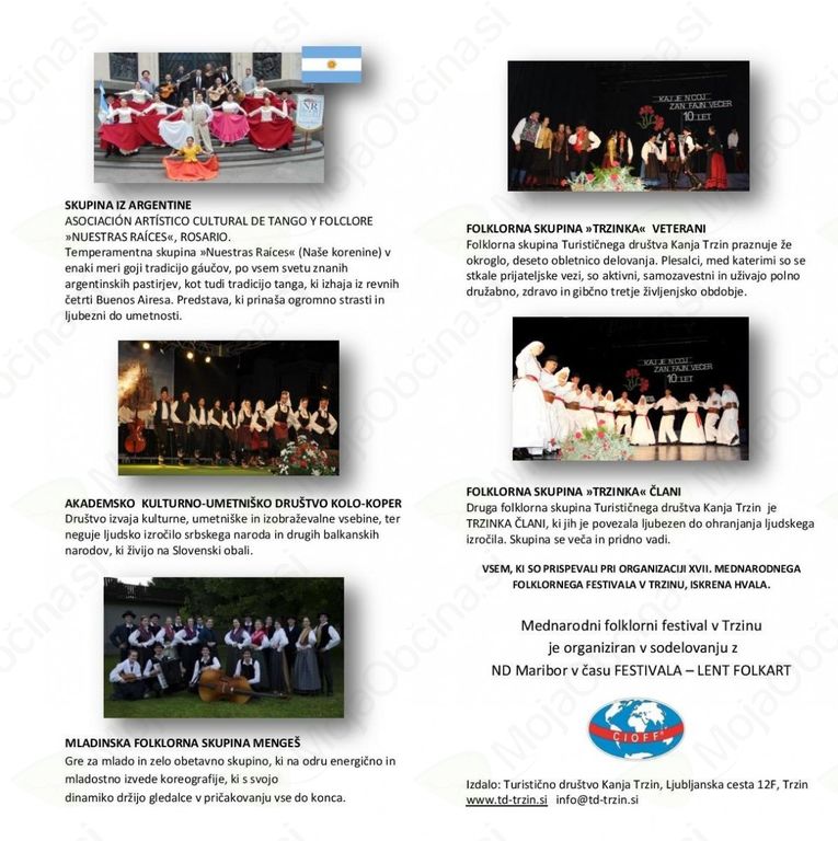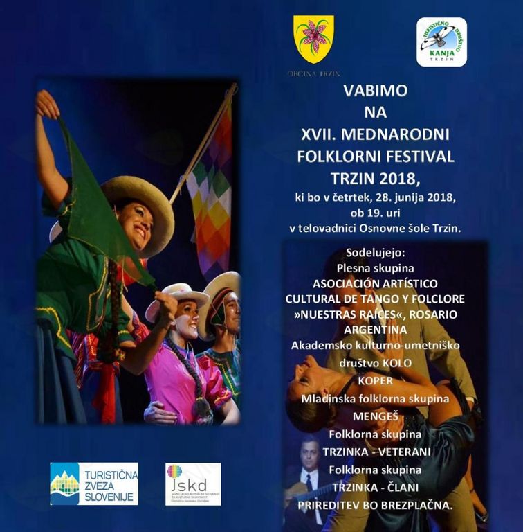 XVII. Mednarodni folklorni festival, v četrtek, 28. junija 2018, ob 19.00 uri, v telovadnici Osnovne šole Trzin.