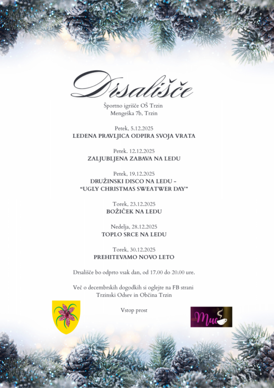 Vabljeni na decembrske dogodke na DRSALIŠČU v Trzinu (Športno igrišče OŠ Trzin, Mengeška 7b, Trzin):