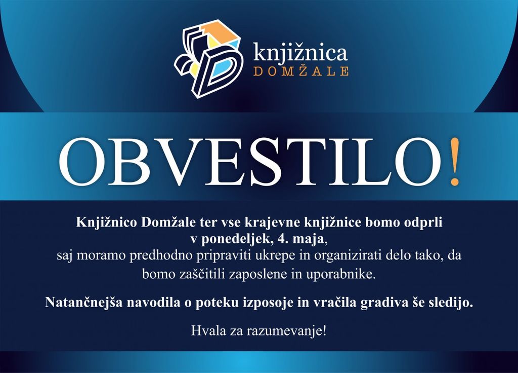 Obvestilo o ponovnem odprtju Knjižnice Domžale in vseh njenih enot