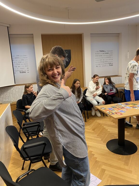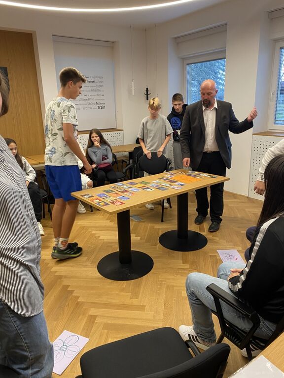 Po kratkem nagovoru župana, smo se udeleženci predstavili in vsak se je opisal s pridevnikom, ki se začne z začetnico njegovega imena. V manjših skupinah je sledilo spoznavanje skozi delavnico »rožica«, kjer se je na sredino rožice napisalo, kaj imamo skupnega vsi v skupini, na posamezne cvetne lističe pa, kaj imam samo jaz. Naslednja dejavnost je bil ogled in izbira Dixit kartic, kjer si je vsak izbral kartico, ki ga je najbolj nagovorila in nato delil z drugimi, zakaj si je izbral prav to. V skupinah se je nato ustvarjal časopis Odsev, z datumom september 2025, na temo, kaj bo pisalo o aktivnostih mladih čez 1 leto. Po tem je sledila predstavitev projekta mladinc Trzin in aktivnosti, ki smo jih v okviru projekta že izvedli v preteklih letih – med drugim hišo strahov, peko palačink, mini disko na Trznfestu, ustvarjalnice, delavnice grafitiranja ter izdelovanje voščilnic za starejše.