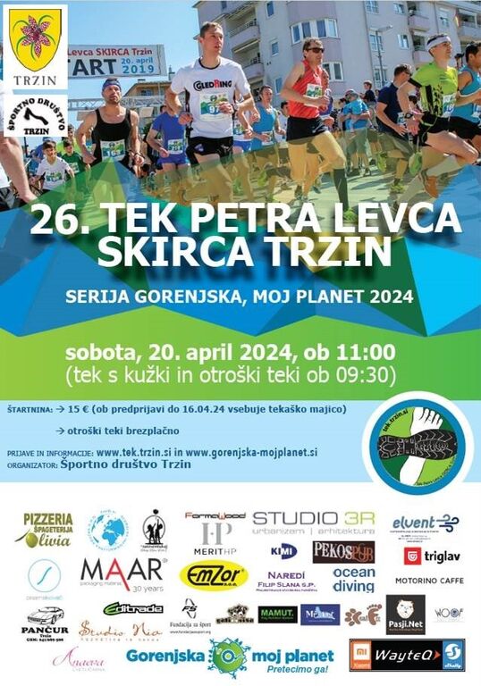 Športno društvo Trzin vabi na 26. TEK PETRA LEVCA SKIRCA TRZIN, ki bo v soboto, 20. aprila 2024, ob 11. uri. Tek s kužki in otroški tek bo ob 9.30.