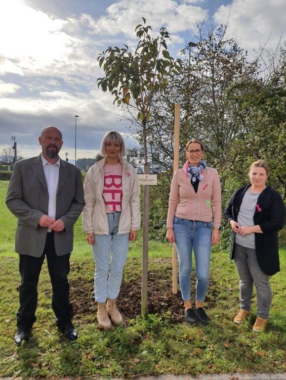 Nato sta župan Peter Ložar in Jasna Konteska posadila rožnato drevo, japonsko češnjo, ki bo tudi v naslednjih letih opozarjalo na pomen skrbi za svoje zdravje, zdravega načina življenja in zgodnjega odkrivanja raka.