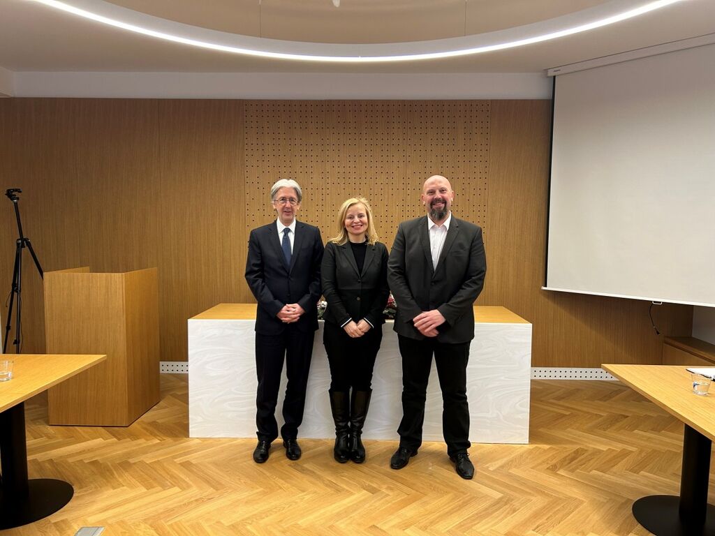 Državni sekretar in vodja Službe Vlade RS za obnovo po poplavah in plazovih Boštjan Šefic, vodja Državne tehnične pisarne Blaž Dolinšek in predstavnik Direkcije za vode so se v ponedeljek, 8. januarja 2024 srečali z županom Občine Trzin Petrom Ložarjem in njegovo ekipo.