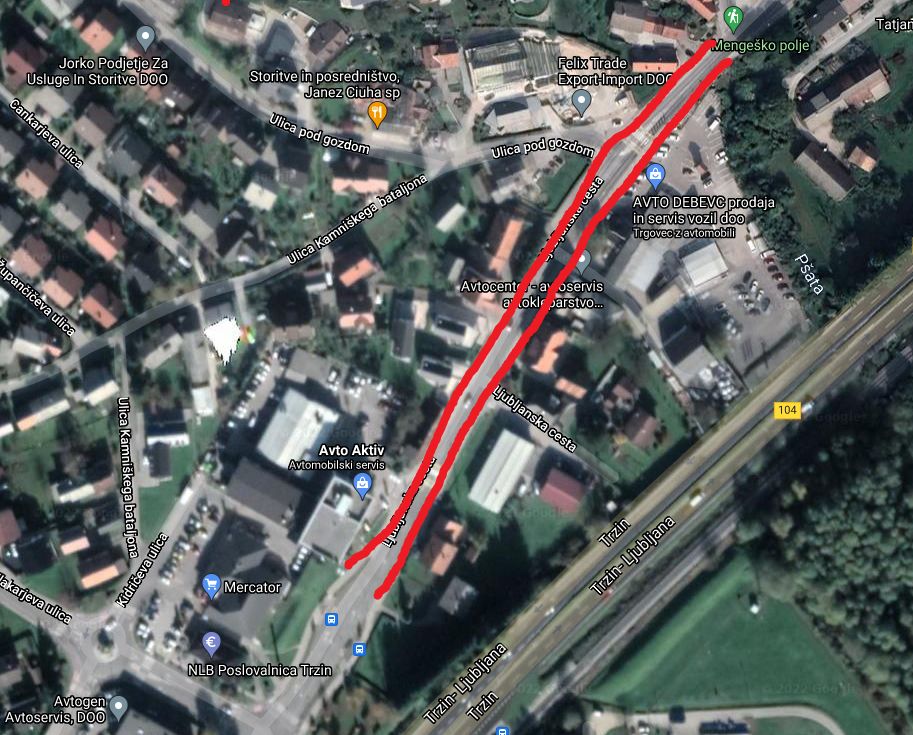 - lokalna zbirna cesta, št. LZ 074261 (Ljubljanska cesta), in sicer se dovoli zapora kolesarske steze in pločnika na obeh straneh ceste oziroma delna zapora ceste od križišča z lokalno zbirno cesto, št. LZ 074211 (Za hribom), do križišča z lokalno zbirno cesto, št. LZ 074221 (Mlakarjeva ulica),