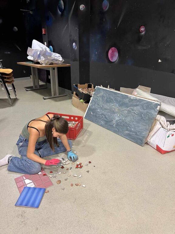 Urejanje prostorov Mladinskega kluba je bilo prvotno načrtovano za oktober 2023, vendar se je projekt zamaknil zaradi poplav, ki so Trzin prizadele avgusta 2023. Tako smo se urejanja prostorov lotili junija 2024. Poleg opremljanja kluba in beljenja prostorov so se mladi pod mentorstvom Simona Vukosava lotili tudi izdelave mozaika. S Simonom so mladi že sodelovali v preteklosti, ko so pod njegovim vodstvom z motivi vesolja pografitirali dve steni v Mladinskem klubu.