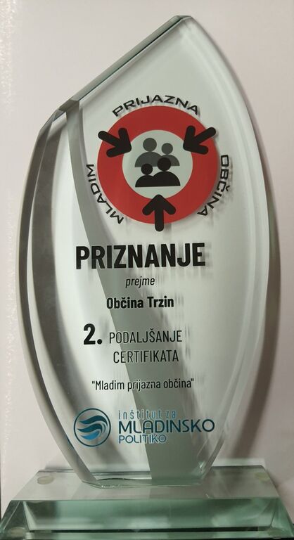 Občina Trzin je ponosna prejemnica priznanja za 2. podaljšanje certifikata Mladim prijazna občina. Plaketo je na slovesni podelitvi prevzel župan Peter Ložar. Prejem certifikata pomeni potrditev, da občina sistematično, celostno in dolgoročno razvija ukrepe za mlade, jih posodoblja in ustvarja okolje, ki mladim omogoča, da aktivno prispevajo k razvoju skupnosti.