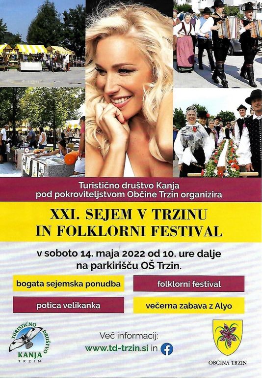 VABILO NA XXI. SEJEM V TRZINU IN FOLKLORNI FESTIVAL, v soboto 14. maja 2022 od 10. ure dalje