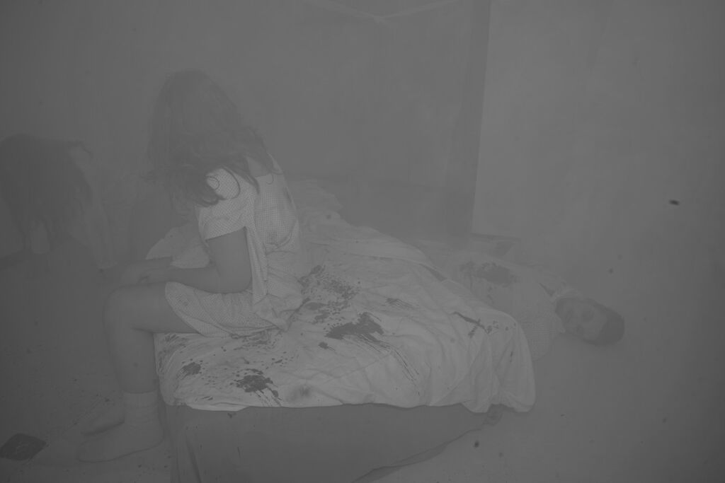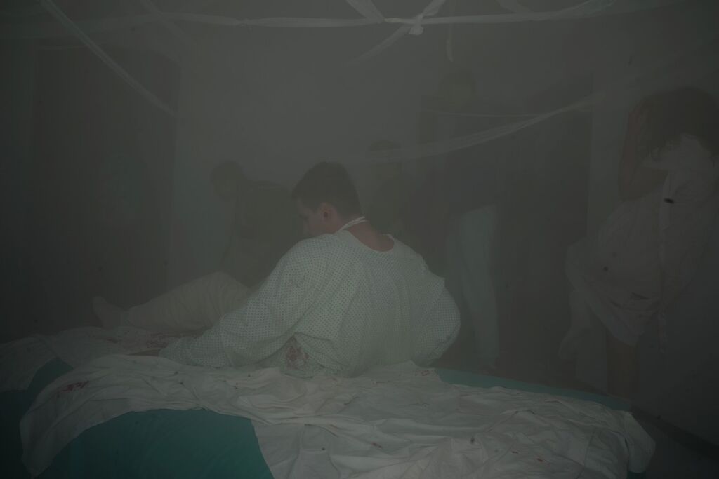 V oktobru so pričeli z delom v prostoru, kjer so s pomočjo zbranih materialov ustvarjali posamezne sobe in postavitve. Projekt je povezal tudi več lokalnih deležnikov. Filc Mengeš je doniral bel filc, uporabljen pri prostorski postavitvi. UKC Maribor je prispeval odslužene zdravniške obleke in opremo, ki so služile kot rekviziti in kostumi (zahvala Darinki Robnik). Civilna zaščita Trzin pa je posodila postelje, ki so poskrbele za pristno podobo umobolnice.