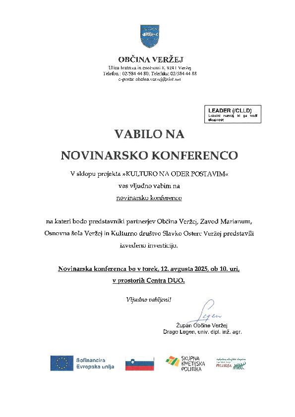 VABLJENI NA NOVINARSKO KONFERENCO V SKLOPU PROJEKTA "KULTURO NA ODER POSTAVIM"