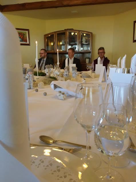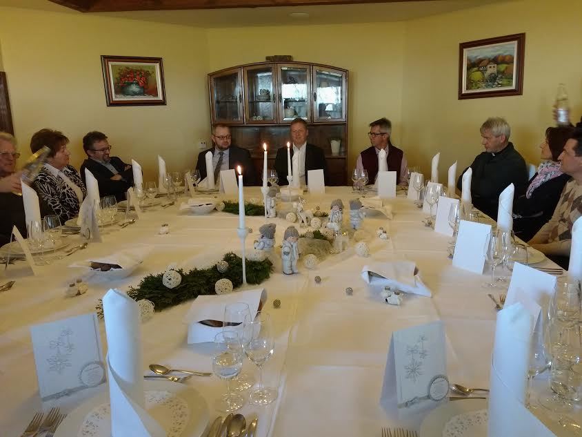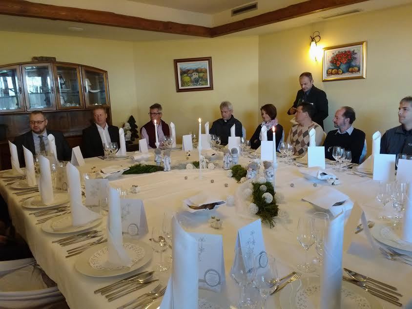Kot je že v navadi, so nas Terme Banovci tudi tokrat gostile na slovesnem kosilu po odprtju razstave jasli v Zavodu Marianum Veržej. Tako se namreč tudi uradno začne Božična Prlekija, projekt, ki združuje Razstavo jaslic v Veržeju, Božično vas v Banovcih in Božično noč na Razkrižju. Letos smo se na pobudo novega direktorja Term Banovci, g. Igorja Magdiča, slavnostnega kosila poleg organizatorjev razstave udeležili tudi nekateri predstavniki društev in organizacij. Gostitelji so se izkazali s svečano pogrnjeno mizo in odličnim kosilom. G. Magdič se je predstavil s kratkim življenjepisom, podal pa je tudi svojo vizijo poslovanja term in sodelovanja z lokalno skupnostjo. Svoje želje sta povedala tudi župan g. Slavko Petovar in direktor Marianuma g. Peter Pučnik. V prijetnem pogovoru vseh udeležencev so se že rodile nove ideje. Prav je tako, še več naj jih bo.