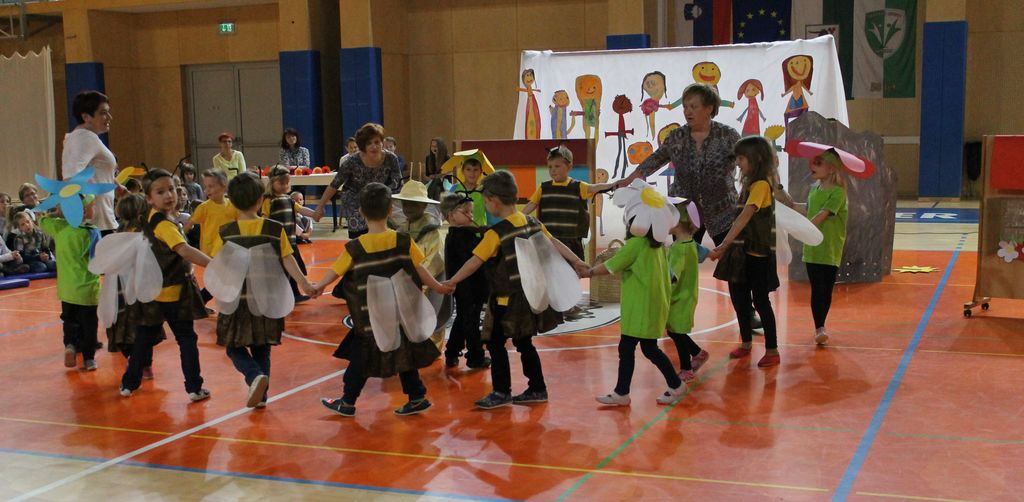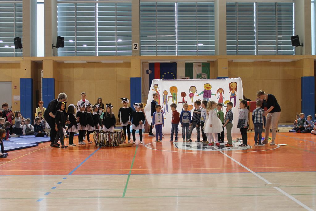 S pesmijo in plesom nas je 8 skupin in preko 150 otrok iz vrtcev Cezanjevci, Cven, Mala Nedelja, Stročja vas, Razkrižje, Križevci, Ljutomer in Veržej popeljalo v svoj, otroški svet, ki je tako pisan, igriv in zanimiv, kot je mavrica na nebu.