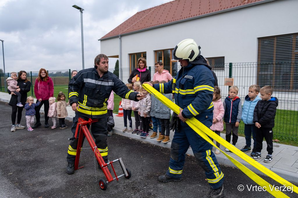 Zahvaljujemo se Prostovoljnemu gasilskemu društvo Veržej, Bunčani in Banovci za pomoč pri izvedbi vaje evakuacije v našem novem vrtcu. Z njihovo podporo so otrokom in zaposlenim omogočili dragoceno izkušnjo, kako pravilno ukrepati v primeru nevarnosti. Njihova mirnost in strokovnost sta v nas vzbudili občutek varnosti in zaupanja. Pokazali so nam, kako pomembna je njihova vloga v skupnosti ter nam dali občutek, da se lahko zanesemo na njih.