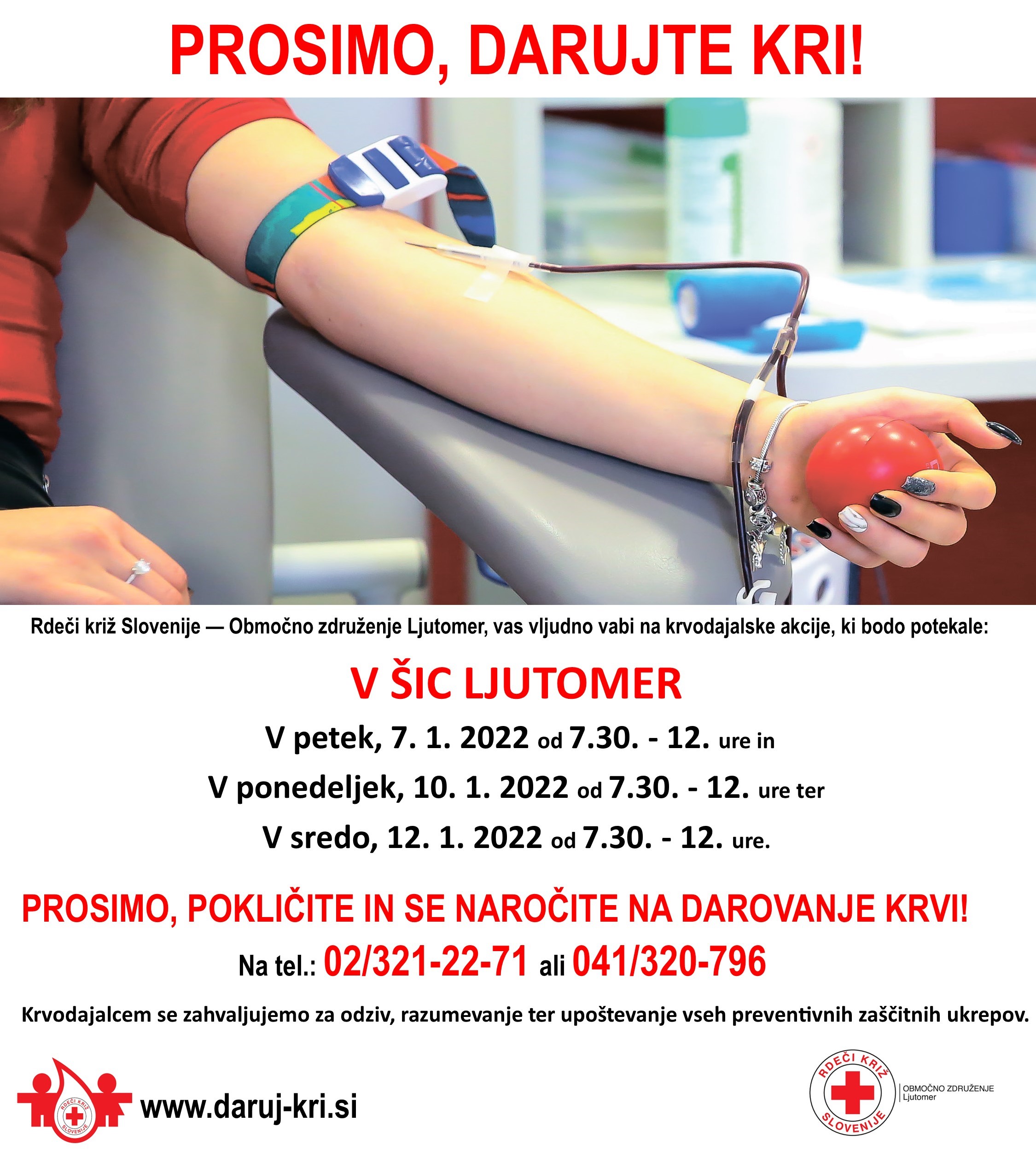 Rdeči križ Slovenije - Območno združenje Ljutomer vas vljudno vabi na krvodajalske akcije, ki bodo potekale v ŠIC LJUTOMER.