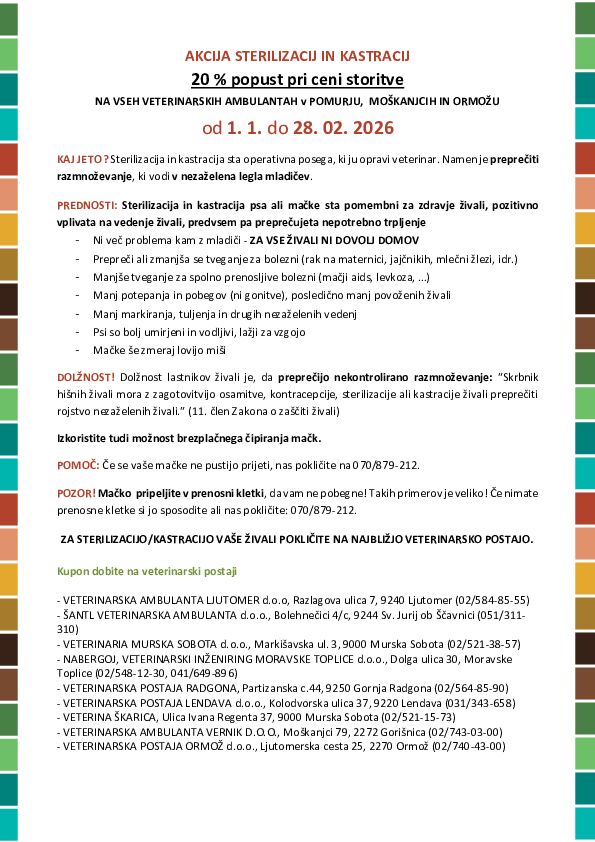 AKCIJA STERILIZACIJ IN KASTRACIJ