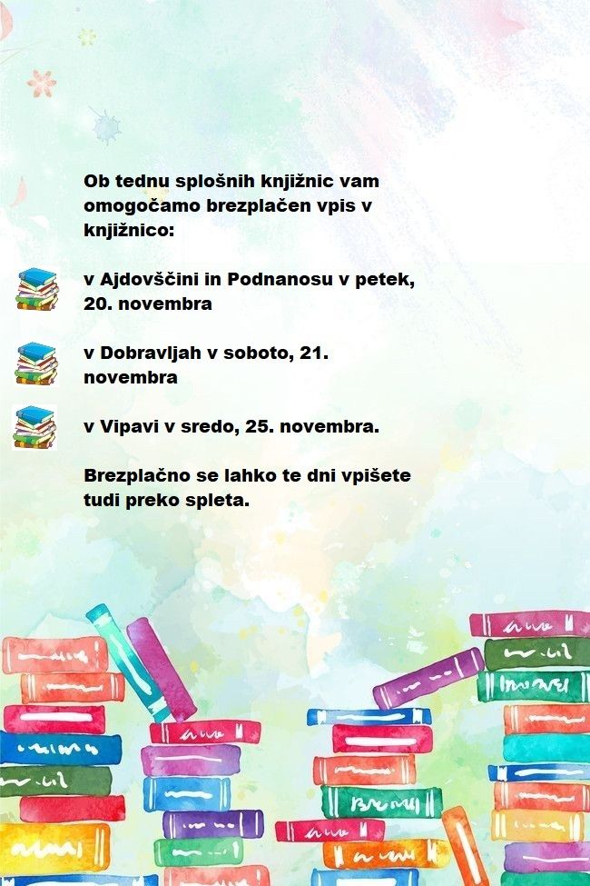 Ob tednu splošnih knjižnic vam omogočamo brezplačen vpis v knjižnico: