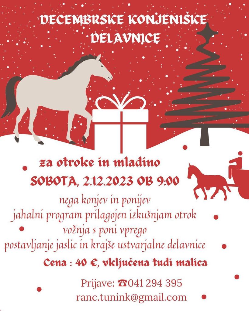 Ranč Tunink organizira decembrske konjeniške delavnice za otroke in mladino, ki bodo v soboto, 2.12.2023 ob 9.00.