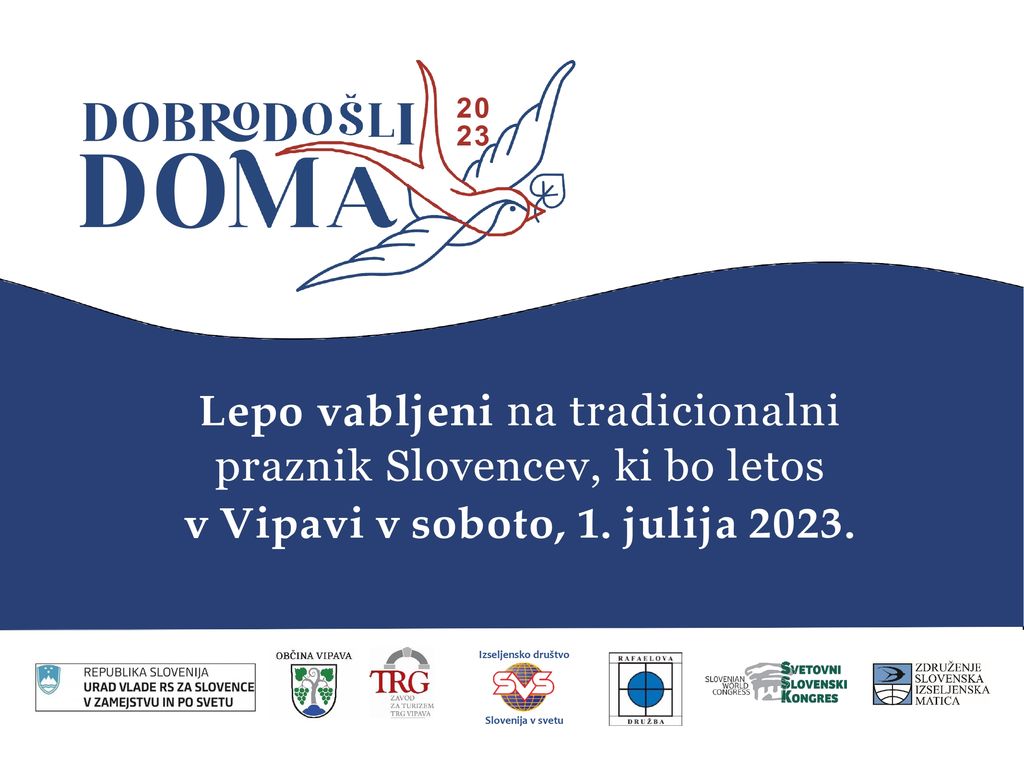 Ob začetku poletja, med 29. junijem in 2. julijem, se bodo v Sloveniji na tradicionalni prireditvi Dobrodošli doma zbrali rojaki iz zamejstva in sveta.