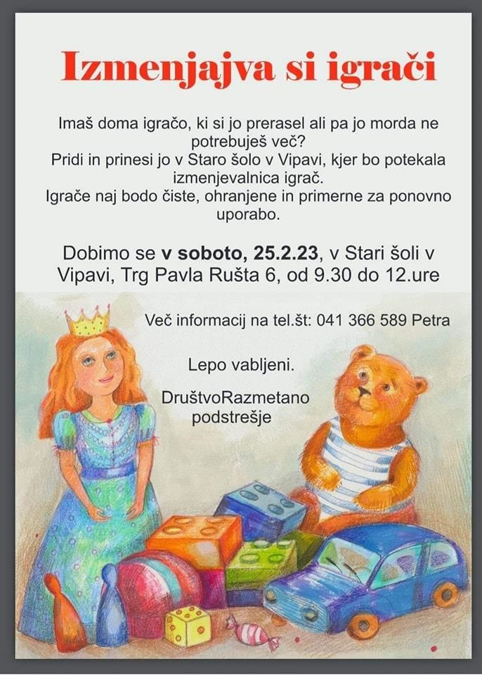 Pridi in prinesi jo v Staro šolo v Vipavi, kjer bo potekala izmenjavalica igrač.