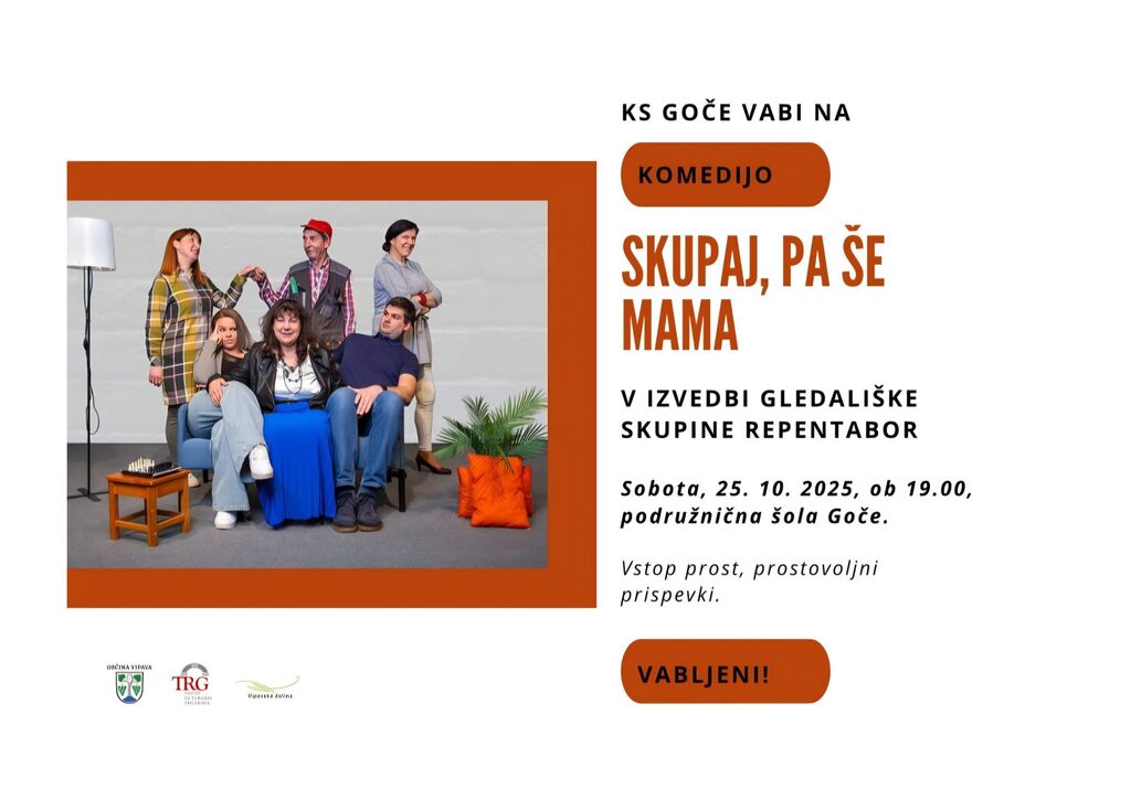 Krajevna skupnost Goče vabi na komedijo z naslovom: Skupaj, pa še mama, v izvedbi gledališke skupine Repentabor.