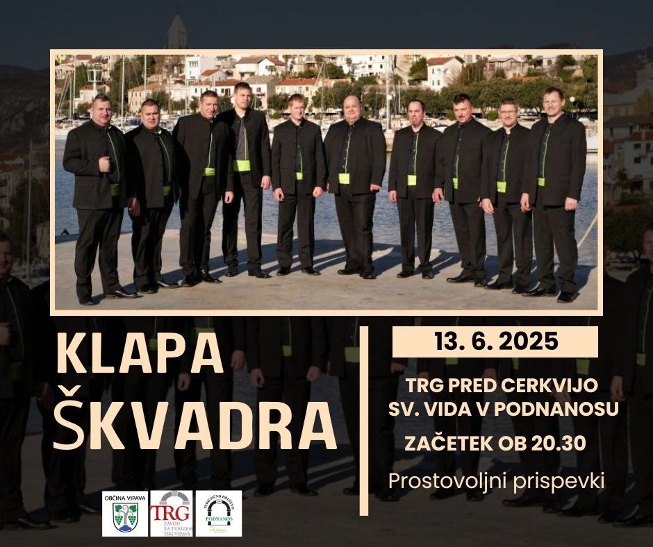 13. 6. 2025 ob 20.30 na trgu pred cerkvijo sv. Vida v Podnanosu.