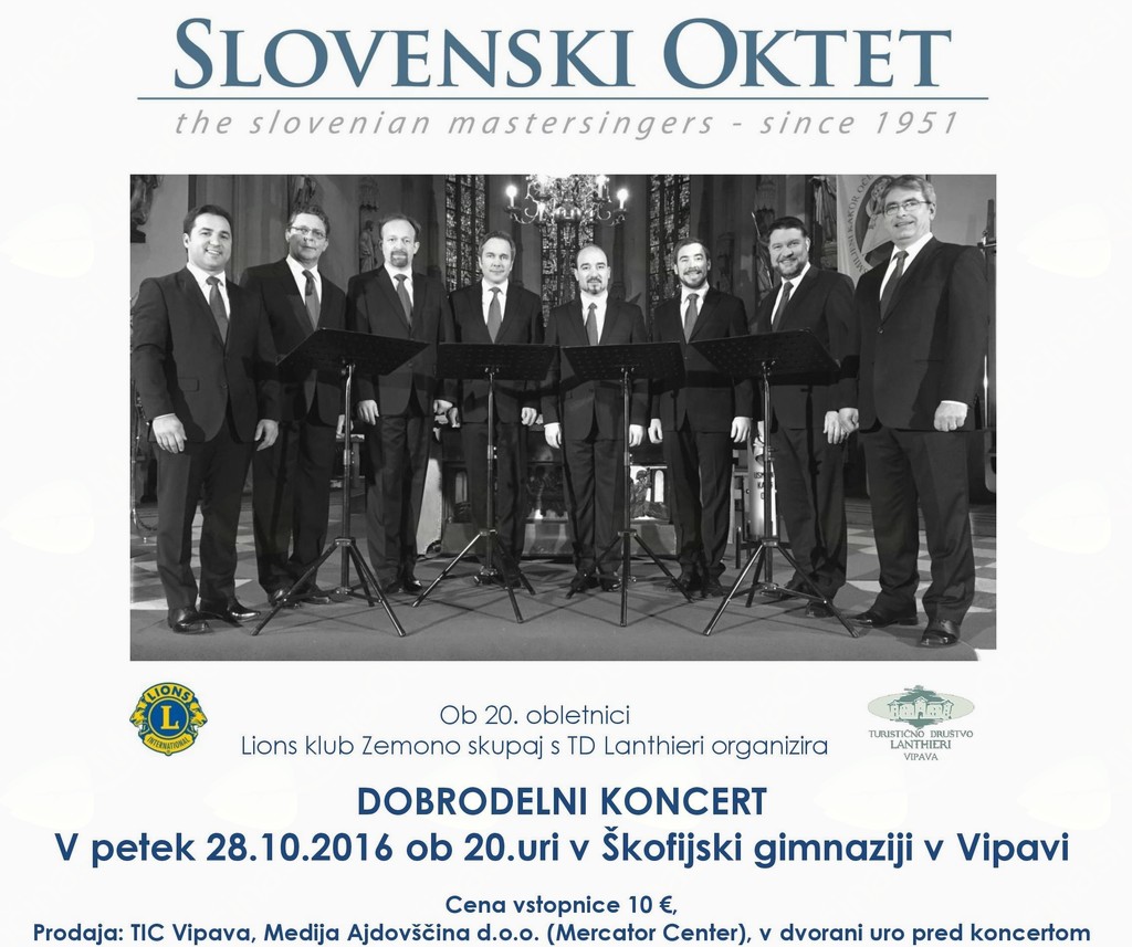 Lions klub Zemono ob svoji 20 letnici delovanja in Turistično društvo Lanthieri Vipava organizirata dobrodelni koncert