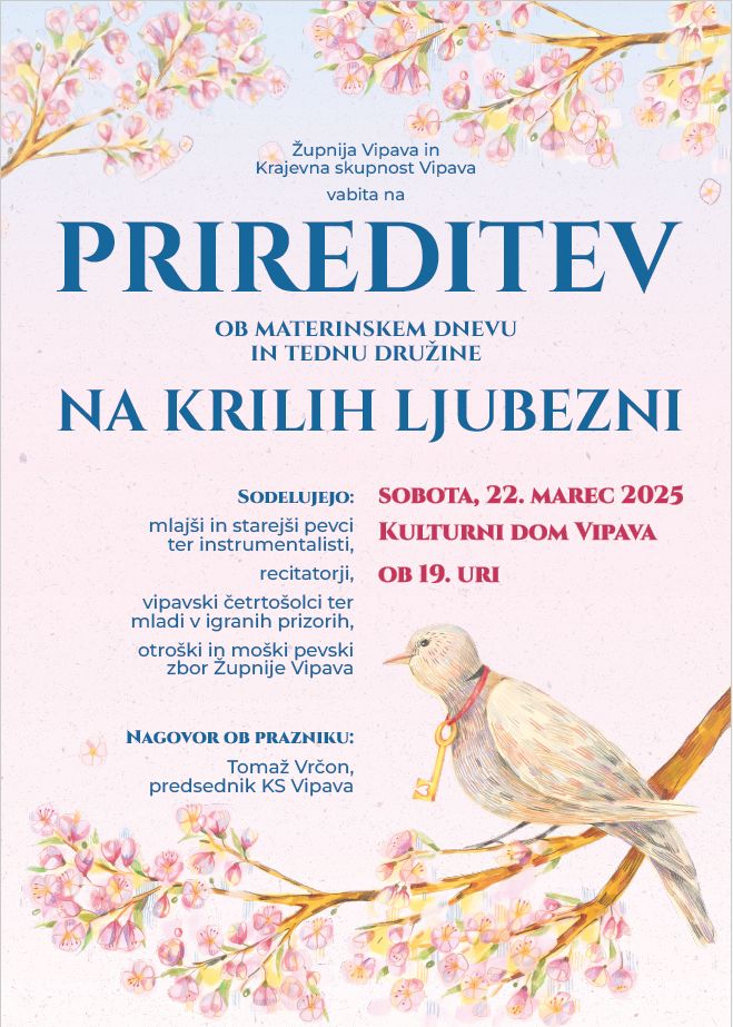 Sodelovali bodo pevci, pevski zbori, recitatorji in otroci. Nagovor bo imel predsednik KS Vipava Tomaž Vrčon.